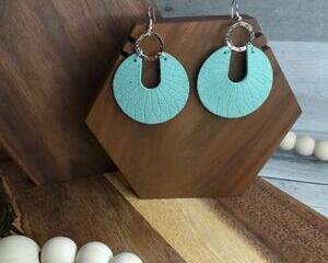 Light Mint Genuine Suede Leather Embossed Hypoallergenic Earring