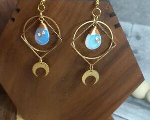 Geometric Moon Phases Brass Hypoallergenic Earrings