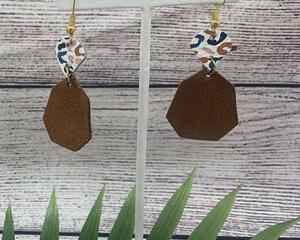 Camel Genuine Suede Leather Embossed Hypoallergenic Earring