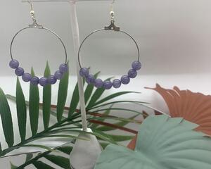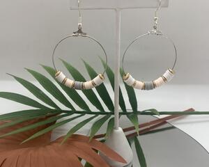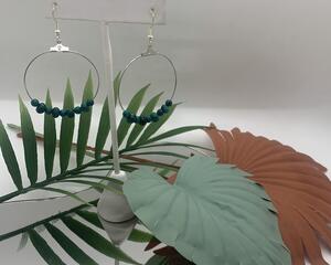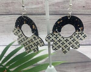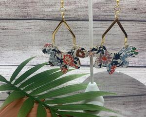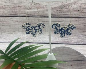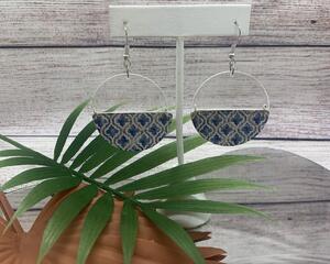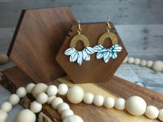 Blue Floral Cork and Brass Hypoallergenic Earrings