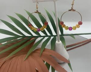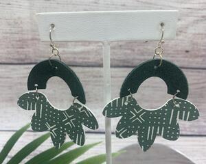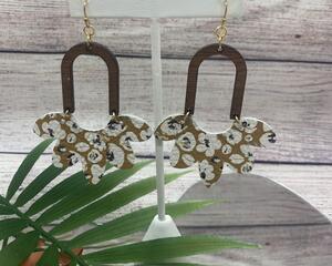 Mustard Floral Genuine Leather and Wood Hypoallergenic Earrings