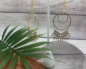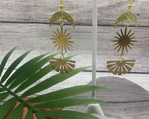 Geometric Moon Phases Brass Hypoallergenic Earrings