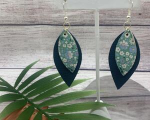 Tiniest Teal Floral Genuine Leather Hypoallergenic Earrings